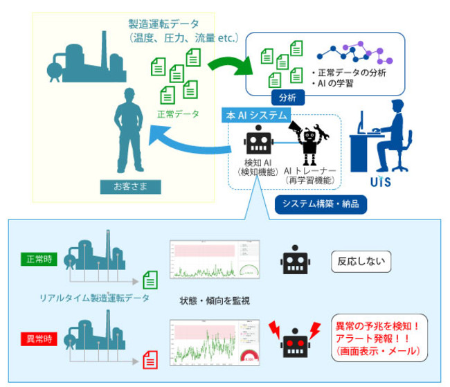 大阪ガス株式会社(本社:大阪府大阪市、社長:藤原 正隆)と株式会社宇部情報システム(本社:山口県宇部市、社長:辰己 尚久、以下「UIS」)は、人工知能(以下「AI」)により過去に経験がない異常予兆を早期に検知するシステム(以下「本AIシステム」)を開発しました。UISは2022年4月1日より、対象装置に合わせた本AIシステム構築サービスの提供*1 を開始します。