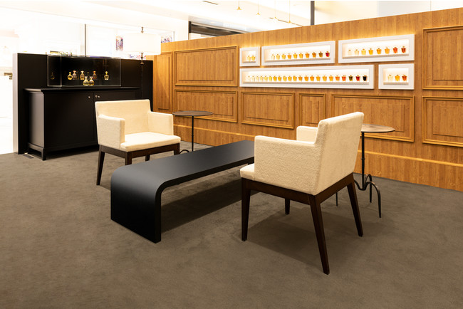 現在アンリ・ジャックはパリをはじめ世界の主要都市9店舗で展開しており、セレブ達から愛されてきました。この度、日本本格上陸として2022年2月にアンリ・ジャックの世界観を表現したポップアップ サロンを、GINZA SIX B1Fにてオープン致しました。このポップアップサロンは、建築家でアンリ・ジャックのアーティステックディレクターのクリストフ・トレメールのよるデザインです。世界で展開するアンリ・ジャック ブティックと同様に、訪れたお客様やゆったりとくつろぎながら香水選びが出来るように再現したサロンとなっています。木製のパネルは、すべてのブティックの特徴ですが、20世紀以前のフランスの豪華な宮殿のインテリアデザインを彷彿とさせます。モダンな素材と伝統的な木材を一緒に使用することは、伝統を重んじながら何世代にもわたり培われてきたノウハウを持っているアンリ・ジャックの哲学を表現しており、革新的でモダンさも取り入れた未来を見据えたサロンとなっています。
