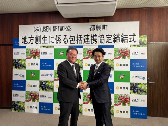 宮崎県都農町(町長:坂田広亮、以下「都農町」)とUSEN&U-NEXT GROUPの株式会社USEN NETWORKS(本社:東京都品川区、代表取締役社長:神田一樹、以下「USEN NETWORKS」)は、2025年11月28日、「地方創生に係る包括連携協定」を締結しました。