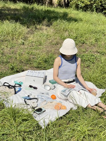 浮かれた指先に、トートバッグには暑い日の味方を詰め込んで。熱がこもる身体を癒やすためのアイテムも忘れずに。