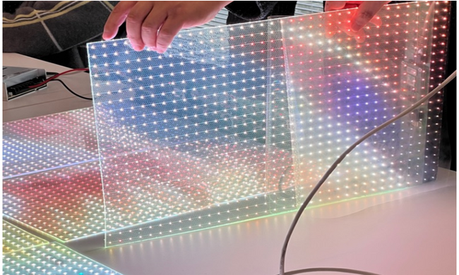 本製品は、世界初となるCOB(Chip On Board)※1形式で製造された透過型LEDフィルムディスプレイです。