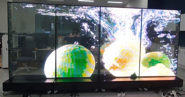 しかし、COB形式を採用することでパッケージ基盤を省略し、不透明部分の面積を従来のSMD形式の4分の1以下に抑え、かつ発光体は配置間隔を狭めることで透過率および解像度を劇的に改善しています。