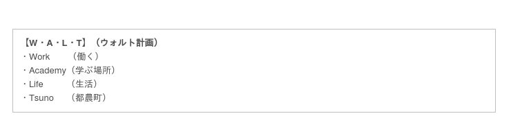 また、今回の取り組みに対して『W・A・L・T』(ウォルト計画)という理念を4者で掲げており、The Unitとしては、人材確保に向けた支援だけでなく、ライブコマース事業(ライコマ)などのデジタルマーケティング領域でも支援し、都農町全体の活性化につながるよう取り組んでまいります。また、当社グループ会社である株式会社TANGLEが提供するコンセプトワークやブランディング、サービスデザインなども取り入れ『W・A・L・T』の価値形成にも寄与して参ります。