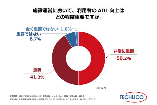 介護施設の経営者または施設長の9割以上が、施設運営において、利用者のADL向上は重要と考えている