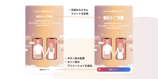カスタムコードでCSSカスタマイズおよびHTMLタグ埋め込みが可能に。ブランド統一されたリッチなヒアリング画面を最短1日で構築可能。