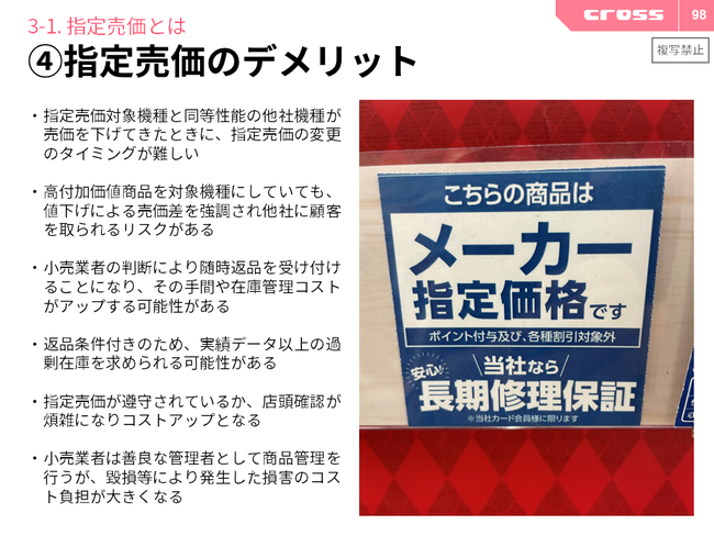 ・取引慣行の見直し、店頭での指定売価の状況、他メーカーの動きなど