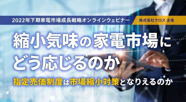 家電流通企業・家電メーカー・広告代理店・SP会社向けのコンサルティングや教育事業、およびECマーケティングの実践と検証、新規参入メーカーの販売・マーケティング支援を手掛けている株式会社クロス(本社・東京都港区)は、2022年9月8日(木)14時より「2022年下期 家電市場成長戦略ウェビナー」をオンラインにて開催します。