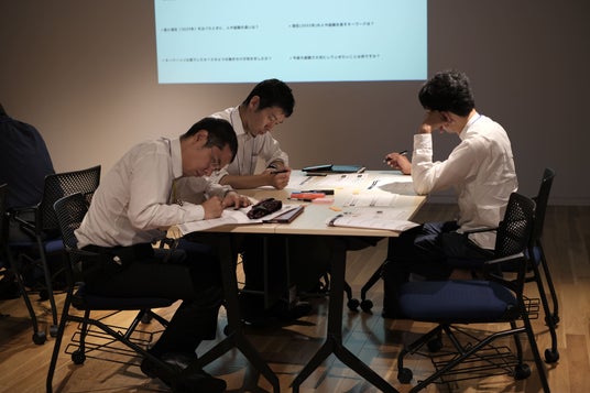 その後は、理想の状態から逆算して3-5年の経営目標、達成するための経営戦略を立て、その経営戦略と連動した人材戦略を各社で考えました。
