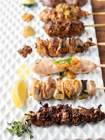 ジビエのような肉質を持つ京都の地鶏「丹波黒どり」と「京鴨」をひっさげ拘り抜いた独自の焼きの技法で焼き上げる至福の焼き鳥を