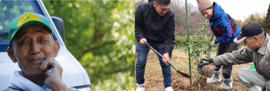 (写真左から)国造柚子生産組合・組合長の塚田良三さん、2019年3月に植樹した時の様子