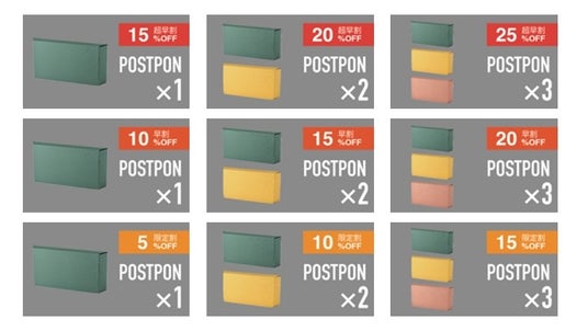 期間中は「POSTPON(定価・2970円)」を最大25%OFF(各割引率ごとに数量限定)で先行予約購入をいただくことができます。
