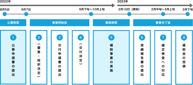 2. 2022年8月5日(金)から2022年9月7日(水)17:00まで、本事業の補助金の公募を行います。補助対象要件に合致する事業者等の皆様は、是非ご応募ください。