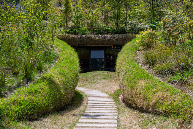 千葉県木更津市の人と農と食とアートが融合した複合施設「KURKKU FIELDS(クルックフィールズ)」内にある、木や草花が生い茂る土の下に、洞窟のように横たわる図書館。 土の中の微生物と共生して植物や野菜が成長するように地中に潜り込んで、本と出会い、知を蓄え、想像する力を養う。自然や農的な暮らしに関するものを中心に、詩、哲学、歴史、宗教、科学や経済にも独自の広がりやつながりが感じられる選書の数々が並んでいます。建築はNAP建築設計事務所の中村拓志さん、選書は「book pick orchestra」の川上洋平さんです。