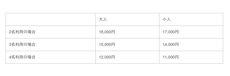 料金は参加人数によって変わります。 ※各コース所要時間 5~6時間程度