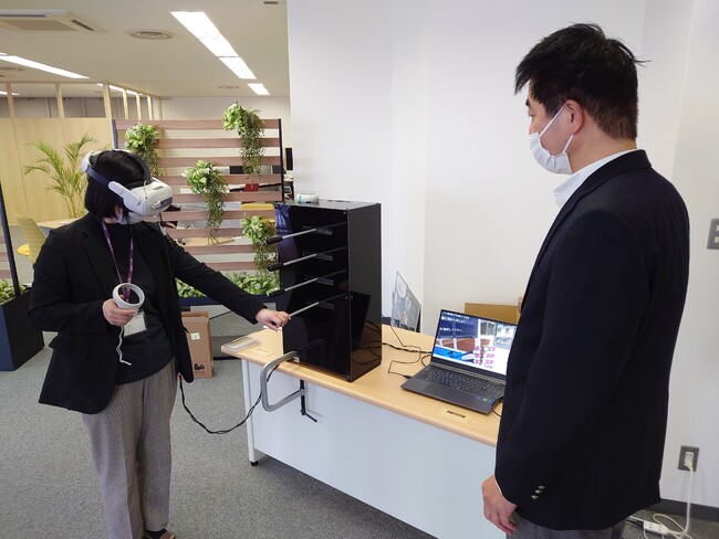 また、シンフォニア株式会社の「小型移動式クレーンVR訓練システム」の西日本における販売代理店を、株式会社ダイテックが担当することとなりました。代理店契約に伴い、株式会社ダイテックが2023年1月に開設した宇部事業所内の「Daitec Digital Labo」のスペースに、シンフォニア株式会社の「小型移動式クレーンVR訓練システム」が導入されております。