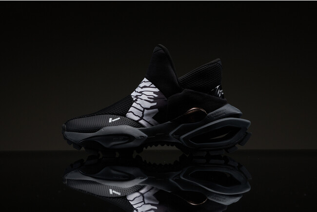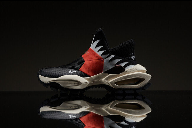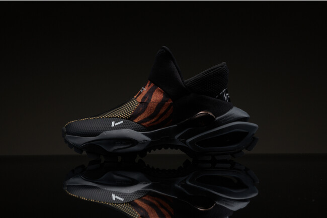 アッパー素材は、厳選したストレッチ生地、ニット、TPUなど5つの素材を組み合わせることで最高の伸縮性とホールド感を提供しています。開発に2年を費やしたソール部分は、動物と人間の共存をコンセプトに動物の持つ野生性と生命力を表現すると共に、未来をイメージした建築的な設計をダイナミックに組み合わせた完全オリジナルで、履く人が自分自身と地球の将来のために駆け出して欲しいという願いを込めています。また、特徴的なミッドソールは見た目だけではなく、クッション性も兼ね備えており、足裏への衝撃を和らげます。履き心地は、自社の足と靴の内寸の3D計測技術(https://flicfit.com/)を活かして、1万人以上の履き心地データを参考にしており、優れたフィット感を実現しました。