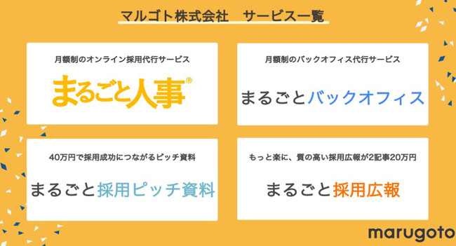 マルゴト株式会社は「理想のサービスと理想の職場を同時実現する」を経営理念にかかげ、採用およびバックオフィス業務の代行を通じて、企業の成長を支援する会社です。