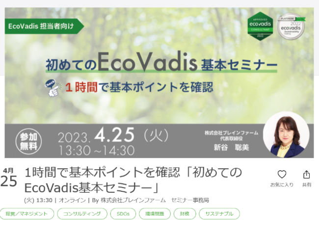 ・(4/25開催)1時間で基本ポイントを確認!「初めての、EcoVadis基本セミナー」