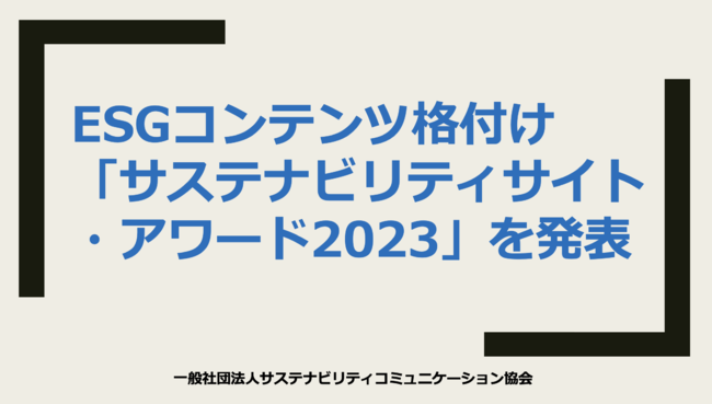 サステナビリティ情報開示に関する調査および第三者評価を行っている一般社団法人サステナビリティコミュニケーション協会(代表理事:安藤光展、以下:当協会)は、サステナビリティ関連ウェブコンテンツ(以下:サイト)の情報充実度で格付けした「サステナビリティサイト・アワード2023」(以下:本アワード)を本日発表したのでお知らせします。