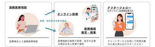 - 空港を離れた後のオンラインアフターフォロー(チャット対応 ※無料、オンライン診療受診者のみ)