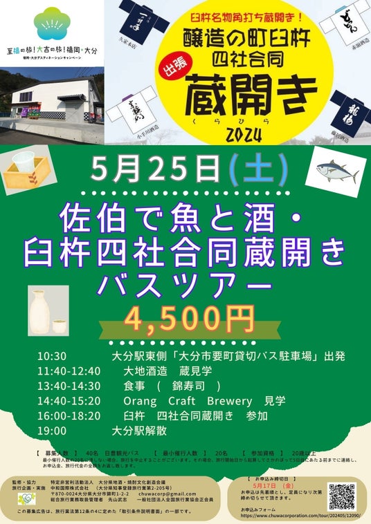 5月25日(土) 佐伯で魚と酒・臼杵四社合同蔵開きバスツアー