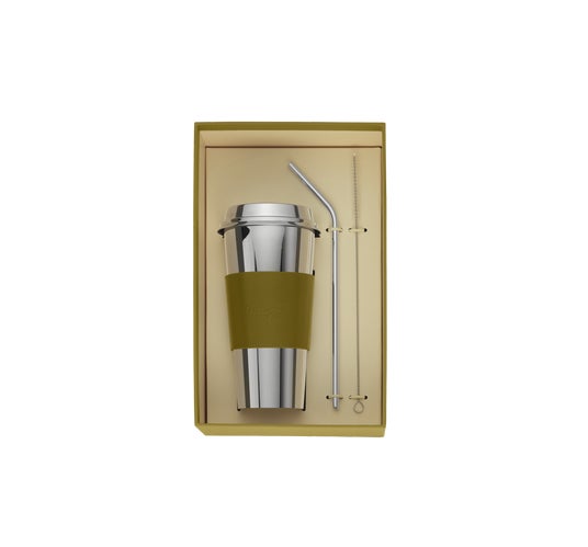 フランスを代表するシルバーウェアブランド「クリストフル」から、サステナブルなポータブルマグが新登場。2層による保温性の高いステンレス素材のボディに、クリストフルのブランドカラーであるインペリアルグリーン(オリーヴグリーン)のレザーが取り付けられ、アクセントに。