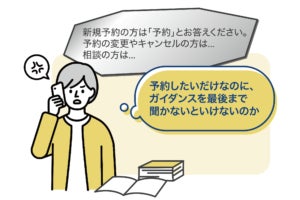 一方、IVR+を利用するクリニック、とりわけ高齢者の患者様が多い医院から「プッシュボタンを何も押さずに電話を切ってしまう患者様が一定割合いる」という声があげられました。プッシュボタンによる操作を行うためには、電話の最中に電話機を耳から離してプッシュボタンを押す必要がありますが、その動作に抵抗がある人が一定数いるためです。