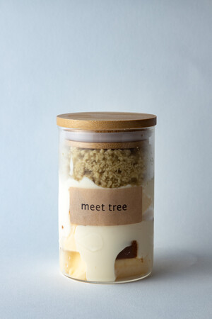 1日最大200個売り上げた「meet tree 中津川プレミアムモンブラン」をモチーフにした、今年の新作モンブラン。瓶の一番底にはスフレフロマージュ、その上にカスタードクリームと生クリームをあわせたディプロマットクリームをのせ、さらに0.3mmの細かな栗粉をトッピング。クリームのなめらかな食感とフワフワの栗粉が口の中でとろけます。