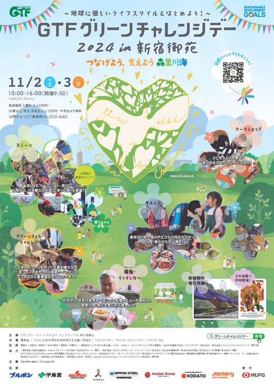 GTF グレータートウキョウフェスティバル実行委員会(東京都千代田区/実行委員長:後藤亘)は、ひとり一人の地球に優しいアクションを応援する屋外型イベント「GTF グリーンチャレンジデー2024 in 新宿御苑」を、2024年11月2日(土)~3日(日)、新宿御苑で開催致します(参加無料)。