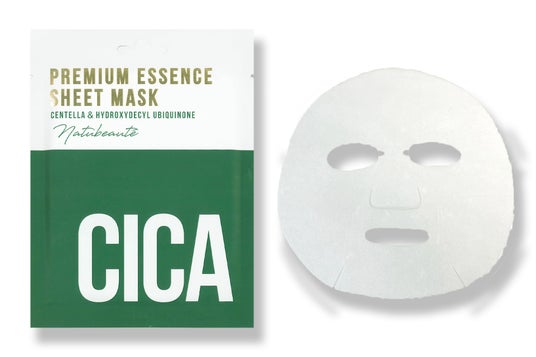 プレミアムエッセンスシートマスク シカトラブル肌をケアするCICA成分(ツボクサエキス)を高配合、さらに注目の美容成分イデベノン(ヒドロキシデシルユビキノン)も配合し、肌荒れ防止&エイジングケア*しながら健康的な肌へ導くスペシャルケアマスク。