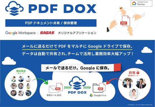 創業以来37年にわたり、株式会社サガスは「ドキュメント管理」をいかに簡単かつ効率的に行うかを追求してきました。Googleの開発パートナーとして培った技術と、事務機器販売の経験を融合させ、『PDF DOX for Google』が誕生しました。