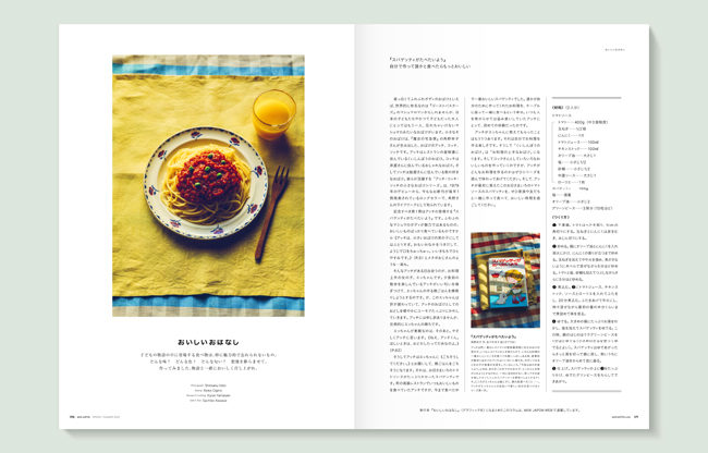 また、漫画家・作家の小林エリカによる「おこさま人生相談室」/コラムニスト山崎まどかによる「新しいファミリー映画」/児童文学とそこに登場する料理のレシピを紹介する「おいしいおはなし」といった、MilK JAPON WEBでの人気連載を誌面に合わせて再編集し掲載しています。