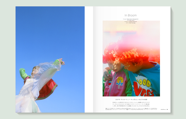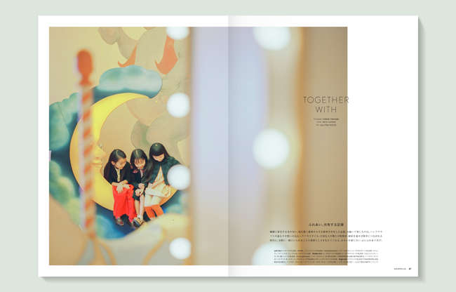 巻頭のフォトストーリーでは、あるアトリエを訪れた三人の女の子たちの様子を追いかけました。クラフト感溢れる明るい色柄のアイテムに身を包んだ子どもたちが手を取り合いながら一緒に過ごす様子は、春のやわらかく美しい光につつまれて、映画の中のワンシーンのよう。撮影は、ジャンルを超えて活躍するフォトグラファー濱田英明。特集とは別に、フォトグラファーインタビュー「Innocent View」にも登場。写真との向き合い方や思いについて伺ったので、特集と合わせて是非お読みください。