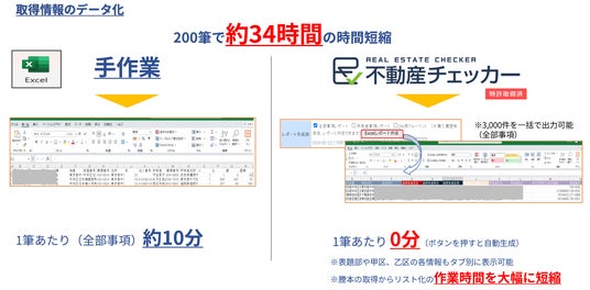 ・登記簿取得に200筆・34時間で数週間 ・約30分 で一括取得