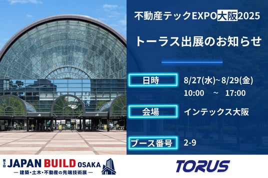 株式会社トーラス(本社:東京都中央区日本橋室町3丁目2-18 海老屋ビル4階、代表取締役:木村 幹夫)は、不動産DX SaaS『不動産チェッカー』は、2025年8月27日(水)~29日(金)インテックス大阪で開催される『第9回 JAPAN BUILD OSAKA - 不動産テックEXPO』に出展。
