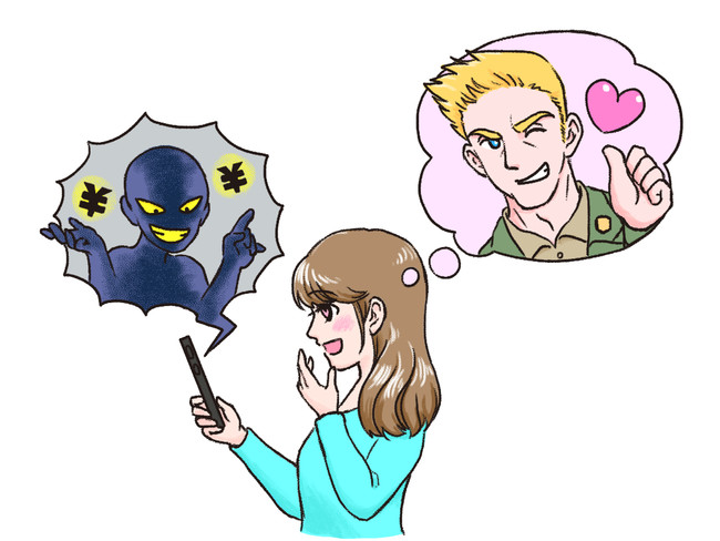 【ロマンス詐欺・国際ロマンス詐欺】は、出会い系サイトやマッチングアプリで知り合った相手に投資話を持ち掛けたり、恋愛感情を利用して不当に金銭を送金させたりする特殊詐欺の一種。