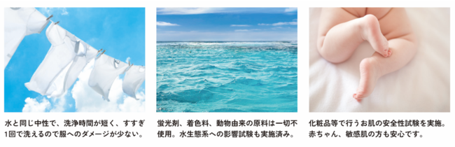 海をまもる洗剤は、油を細かくして分散させる技術により、洗濯槽や排水パイプ、グリストラップが詰まりにくくなります。これにより、悪臭の原因を断ち、洗浄のために有害な薬品を使う事無く、さらに掃除回数を減らすことが可能になります。また、洗剤も落ちた汚れもすべてを自然分解しやすくするため、浄化槽や処理場への負担を軽減させることで、川や海への環境負荷を大幅に軽減します。洗浄成分は100%天然成分・植物由来であり、石油由来の成分を使用していません。