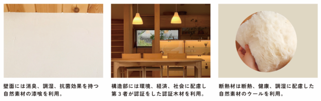 森と海を守るコインランドリーの建物はエコ建築考房様に設計を頂き、使用する素材は健康や耐久性に配慮しべニア・合板、ビニールクロスなどはゼロ。国産材で、かつ産地がはっきりした認証木材(東白川村産)を使用することで森をまもりながらの建物づくりにこだわりました。