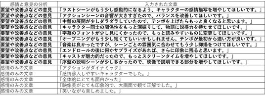 コメント分析の例。要望のみの抽出や、ポジティブな意見の抽出などに優れるので手軽な分析が可能に。