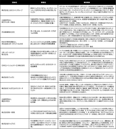 スポーツ実施を阻害する課題解決のための実証実験 発表団体(11団体)