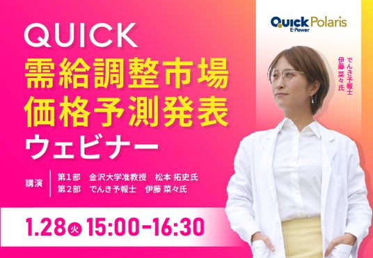 株式会社 QUICK(本社:東京都中央区、代表取締役社長:高見信三)は、多くの電力事業者の皆様にご利用いただいている「QUICK E-Power Polaris」サービスの電力価格予測情報を大幅に拡充し、需給調整市場(3次調整力2.)の価格予測情報の提供を開始しました。