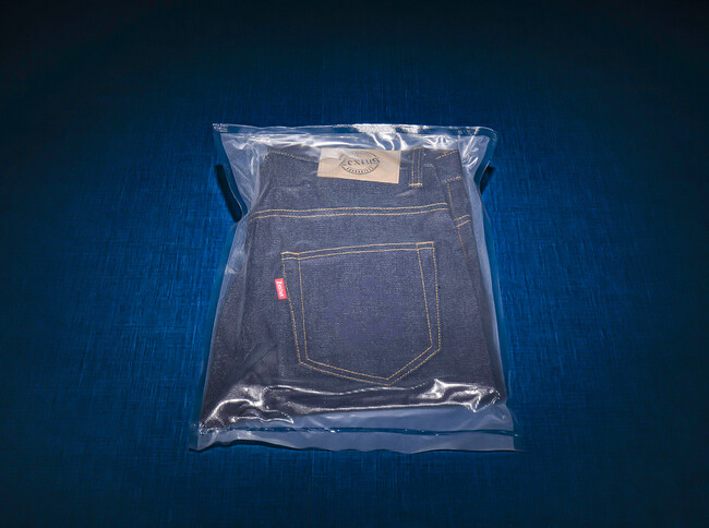 出来立てのデニムを暗室で保存し真空パックで発送する拘りの大人向けジーンズ。