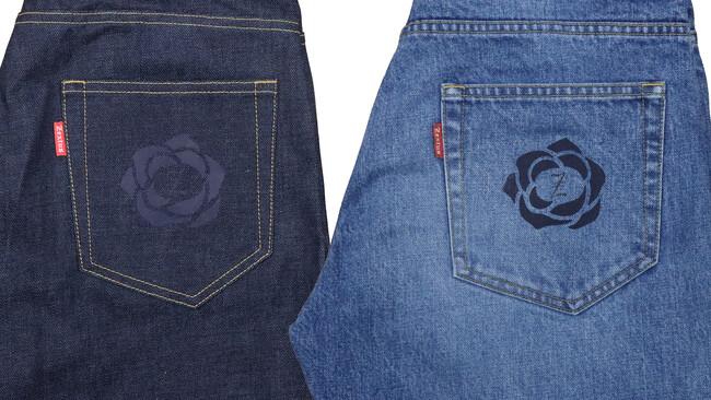 そして、おしりのポケットに施した青バラのロゴは経年変化とともにロゴマークが浮き出る仕組みとなっています。この青バラには思いが込められており、青色のバラは作ることができないことから不可能という花言葉でした。しかし、日本の技術者の努力により青バラを作ることに成功し、そこから「奇跡、夢」などの花言葉に変わった経緯があります。このジーンズの愛用者の夢が叶うという思いで青バラのモチーフをプリントすることになりました。
