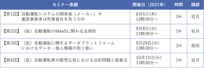 松田綜合法律事務所は、「自動運転とモビリティサービス関わる法務」と題して、連続WEBセミナーを開催します。