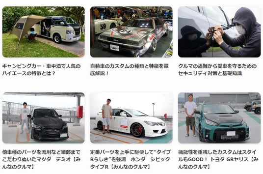 「モトメガネCARS」は、自動車に関連する多様な情報を提供する内容となっています。車両メーカーやパーツメーカー、カスタムショップの紹介記事を中心に、用品の使用レビュー、新型車や新製品の紹介、さらには一般ユーザーの愛車カスタム記事など、多彩なテーマを取り上げます。また、関連イベントの情報も掲載し、自動車愛好者のための充実したコンテンツを発信していきます。