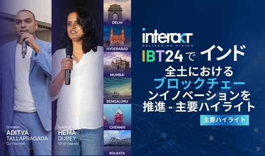デジタルトランスフォーメーションとブロックチェーンソリューションの先駆者である株式会社Interakt(東京都渋谷区、代表取締役:塚本愛乃、以下Interakt)は、本年9月にインドの主要6都市で開催された「インド ブロックチェーン ツアー(IBT)2024」に参加し、インドのブロックチェーン業界における強固な存在感を確立しました。このイベントで、当社の共同創設者であるアディティア・タラプラガダと、マーケティング部長のヘマ・ドゥベイが基調講演を行い、フィンテックやその他の業界におけるブロックチェーンおよびWeb3技術の変革の可能性について洞察を示しました。