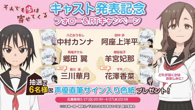 第2弾キャスト発表を記念して、各キャラクターのイラスト&声優のサイン入り色紙が当たる公式Twitter フォロー&リツイートキャンペーンを実施中です。
