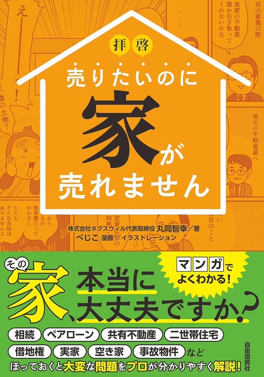 訳あり不動産の買い取り事業を行う株式会社ネクスウィル(本社:東京都港区新橋)の代表取締役・丸岡 智幸の著書『拝啓 売りたいのに家が売れません』が2024年5月2日に自由国民社から発売されます。相続、境界、ペアローン、空き家など気になる家の問題を専門家として漫画と文章で分りやすく解説しています。