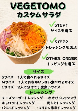 オリジナルの6種類のドレッシングや18種類以上トッピングでサラダを自分好みにカスタマイズ