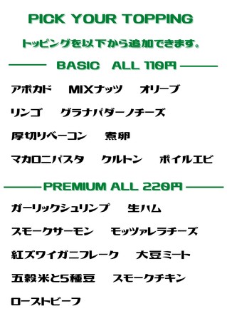 ☆18種類以上ものトッピングがあり飽きのこないライナップでサラダを食べる楽しみを!